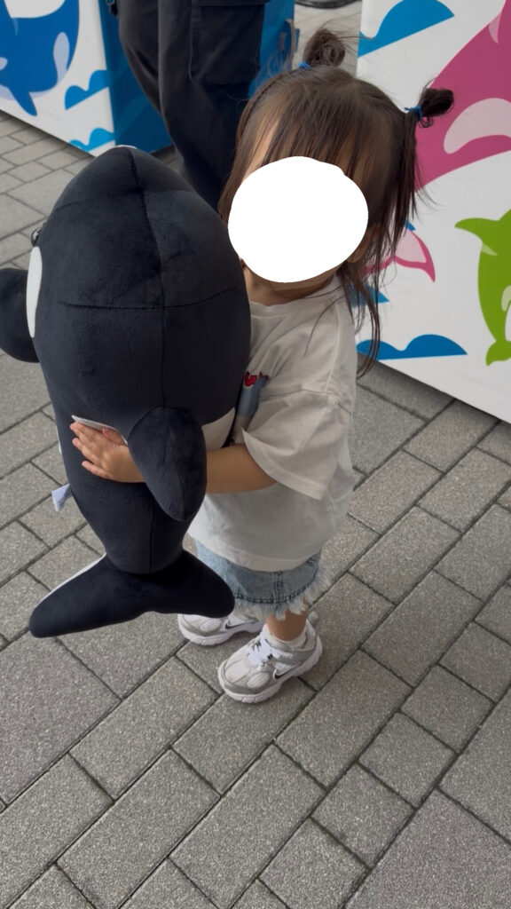 帰り際にオルカのぬいぐるみが当たるくじ引きがあったのでやってみました🎶